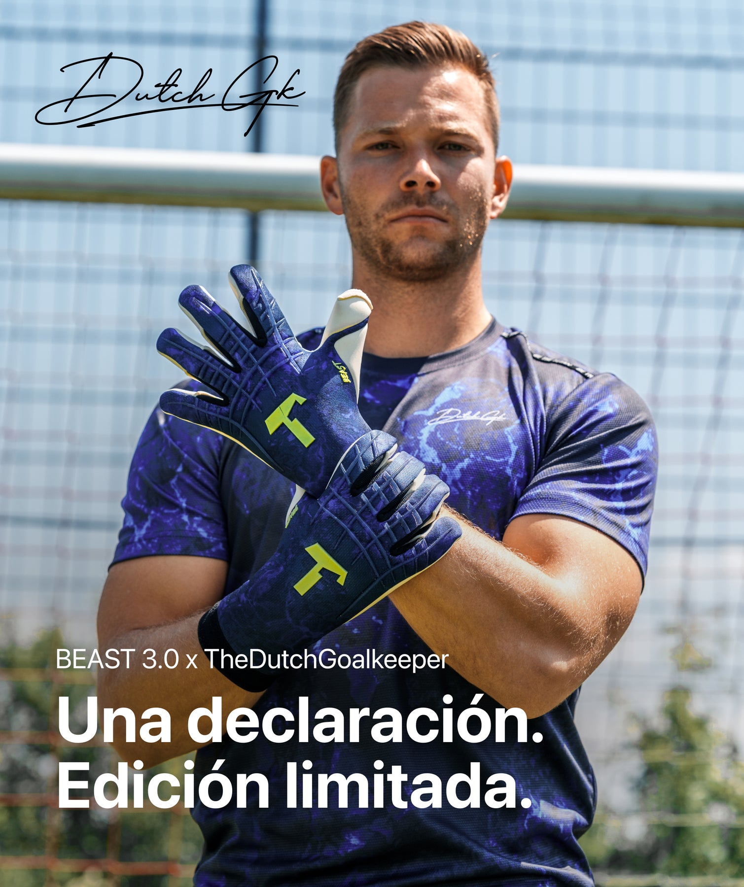 Guantes de portero profesionales para césped natural. Diseñados en colaboración con el influencer @thedutchgoalkeeper.