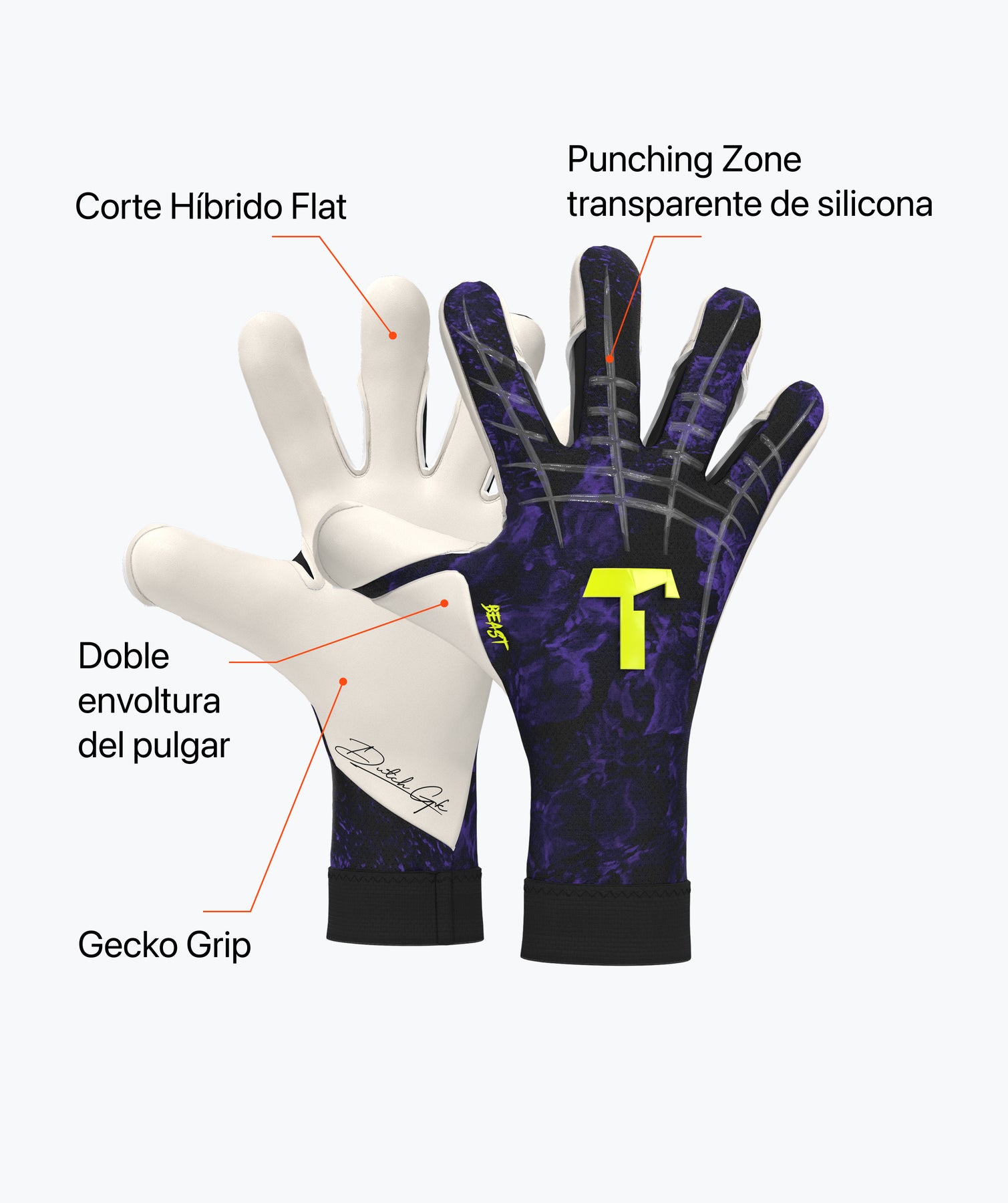 La combinación de Rolled Fingers y Corte Flat garantiza un ajuste extremadamente cómodo y una mayor superficie de contacto con el balón.