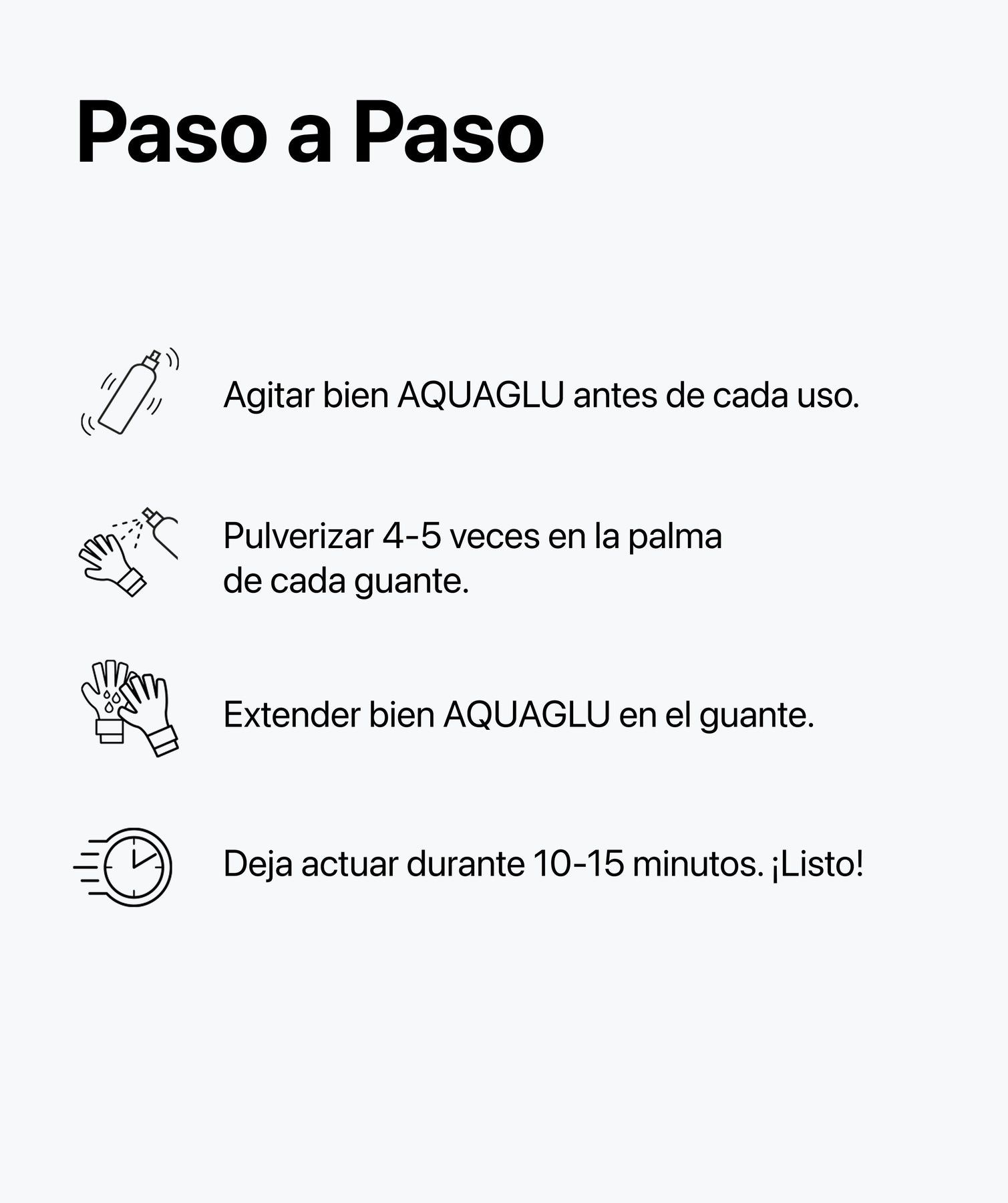 - AQUAGLU. Nuestro AQUAGLU ha sido especialmente desarrollado para mejorar significativamente el agarre de tus guantes de portero, incluso en condiciones de humedad. Para que puedas confiar al 100% en tus guantes incluso con tiempo húmedo y blocar balones con confianza.